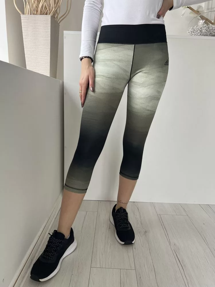 Adidas (S) Zöld-Khaki Fekete Gumisderekú Rövidszárú, Rugalmas Anyagú Nadrág