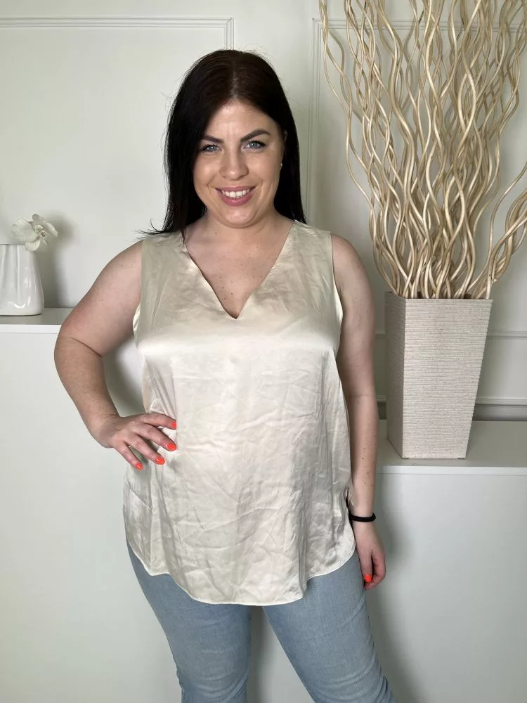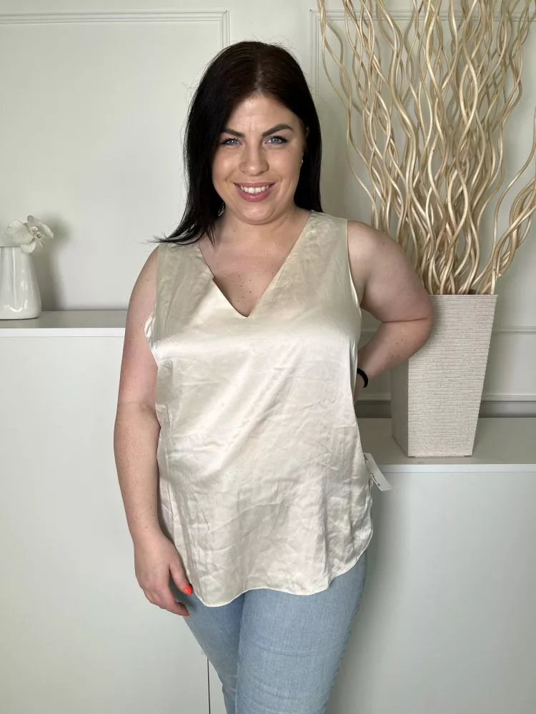Autograph (L) Krémszínű V Kivágású, Oldalt Sliccelt Fényes Anyagú Felső