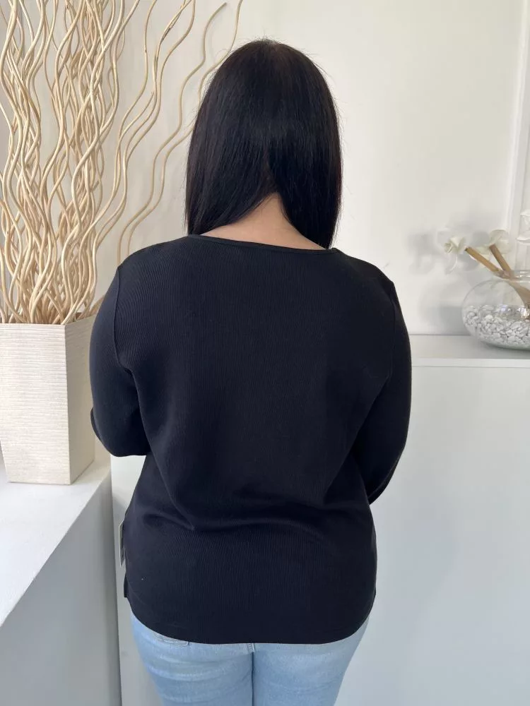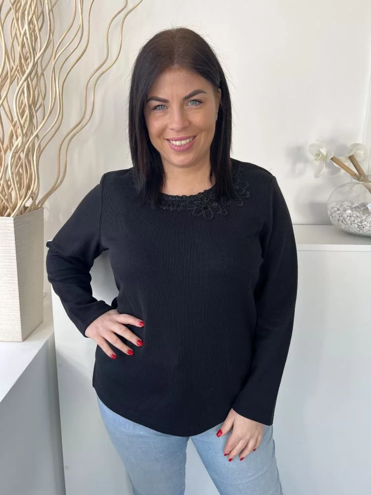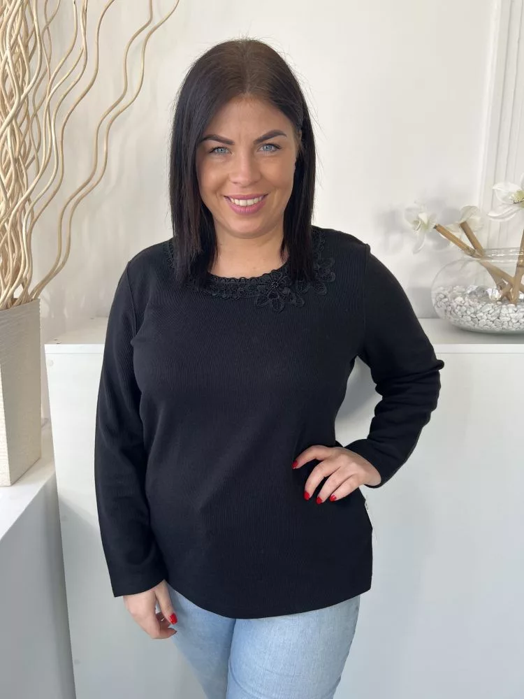 BM Collection (M) Fekete Nyakánál Csipkemintás, Oldalt Sliccelt Anyagában Mikrobordázott Felső