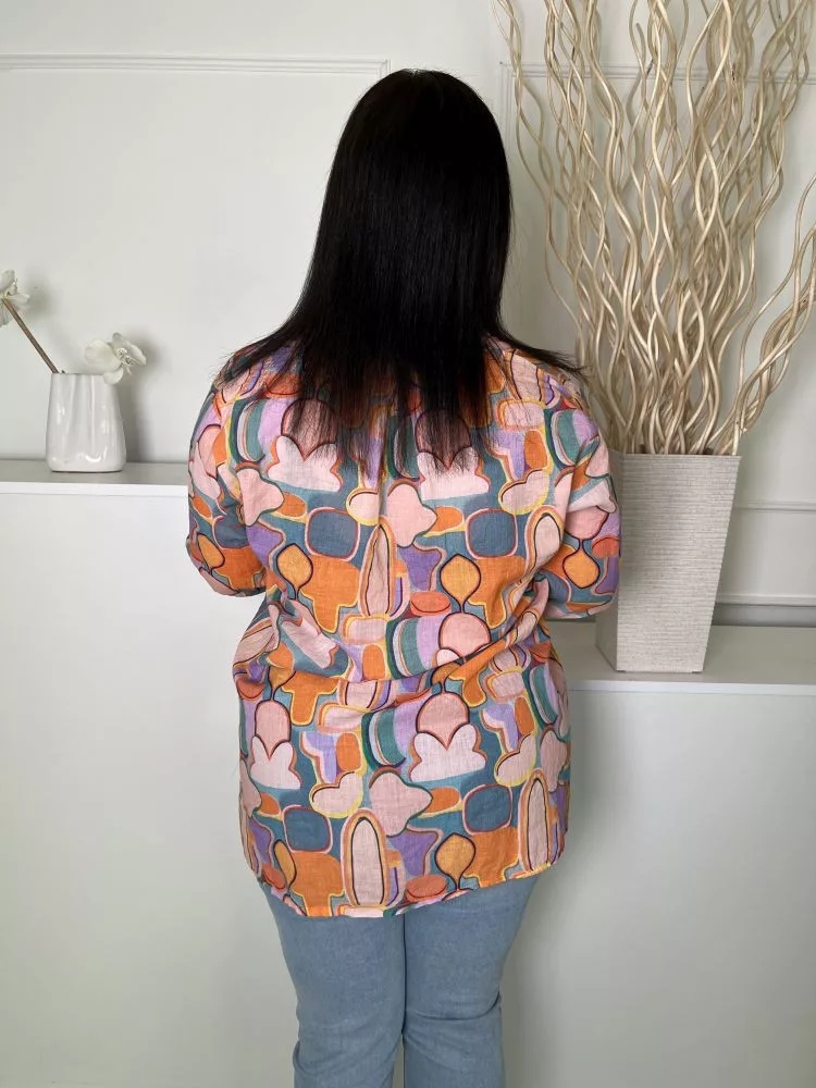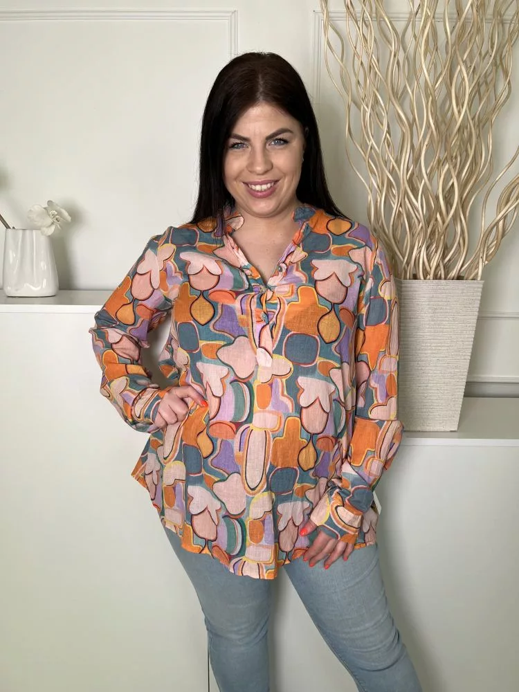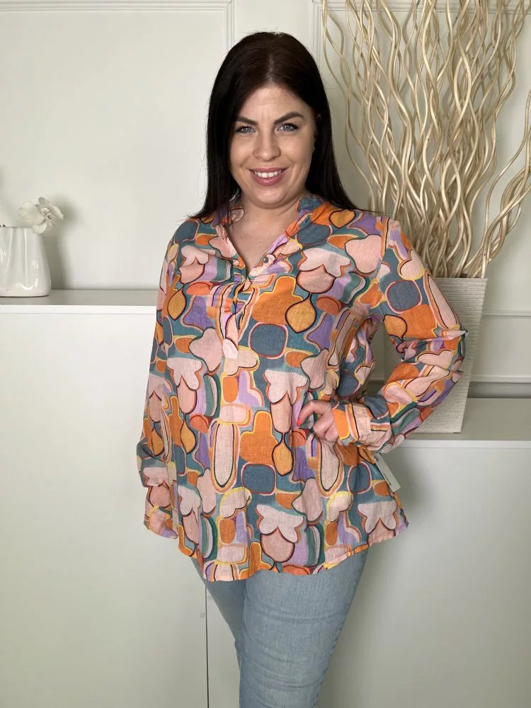Banditas (L) Türkíz-Narancs-Barack Mintás,, Mellnél Gombos 100% Pamut Alapanyagú Felső