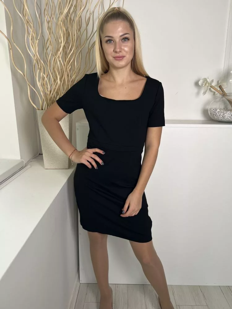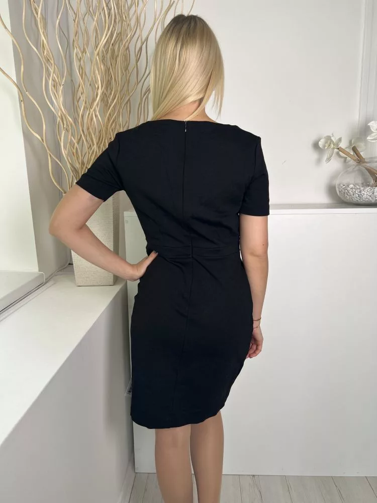 Benetton (M) Fekete Hátul Cipzáros, Mellbevarráso Kocka Kivágású Ruha
