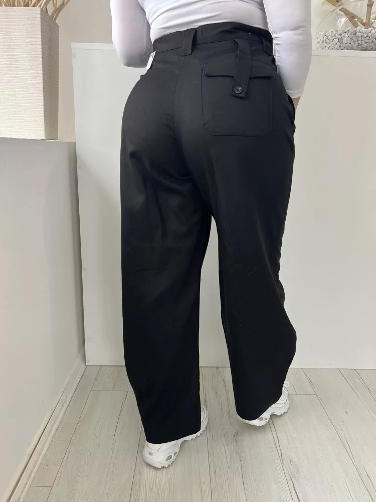 Bershka (L) Fekete Elől Gombos, Zsebes Övtartós, Bőszárú Nadrág