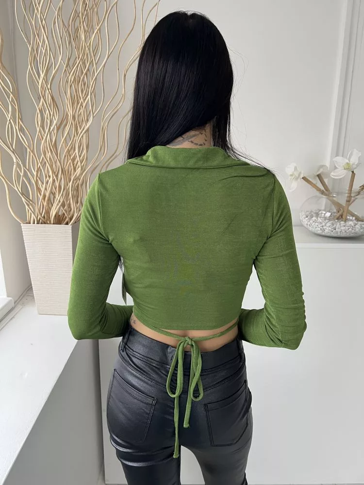 Bershka (M) Fűzöld Elől Végig Gombos, Galléros Derékban Megköthető, Fényes Anyagú Felső