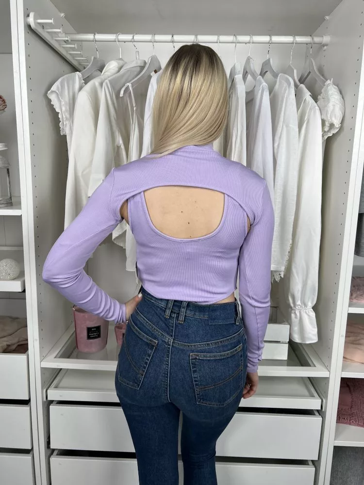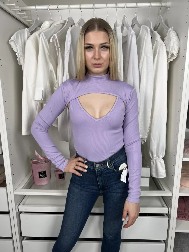 Bershka (S) Lila Anyagában Bordázott Mellnél Kivágott, Állógalléros Body