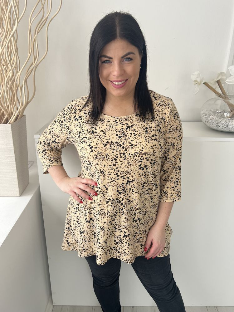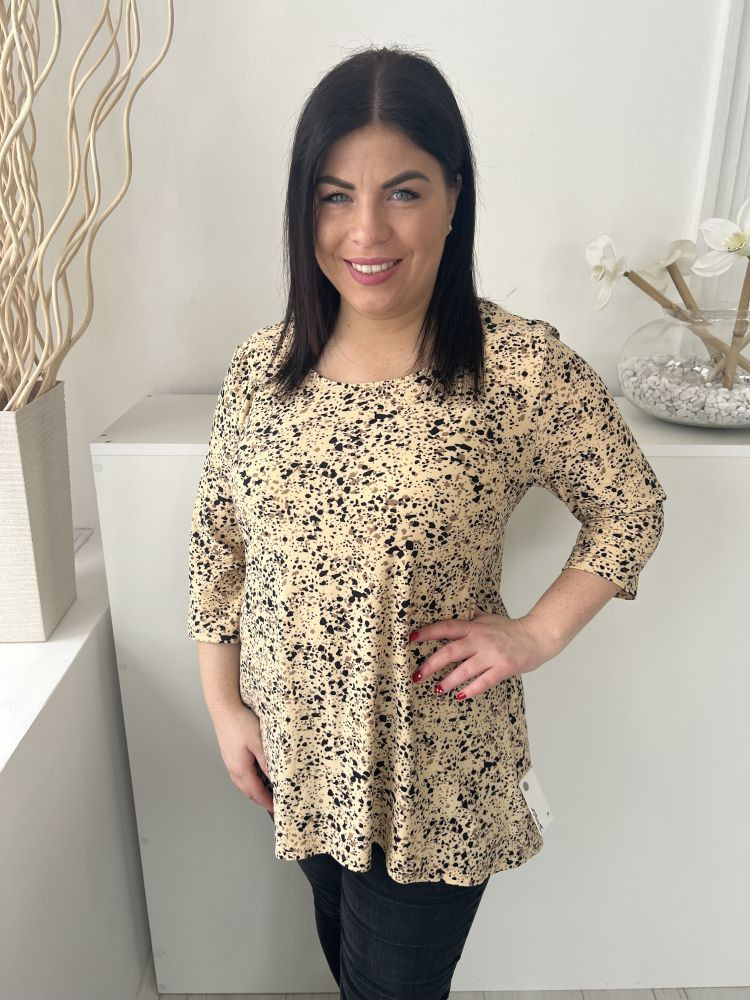 Bodyprints (M) Sárgásbarna Fekete Foltmintás, Bőaljú Kellemes Puha Anyagú Felső