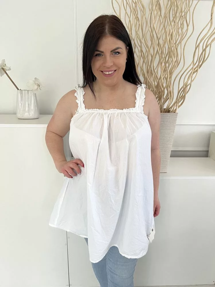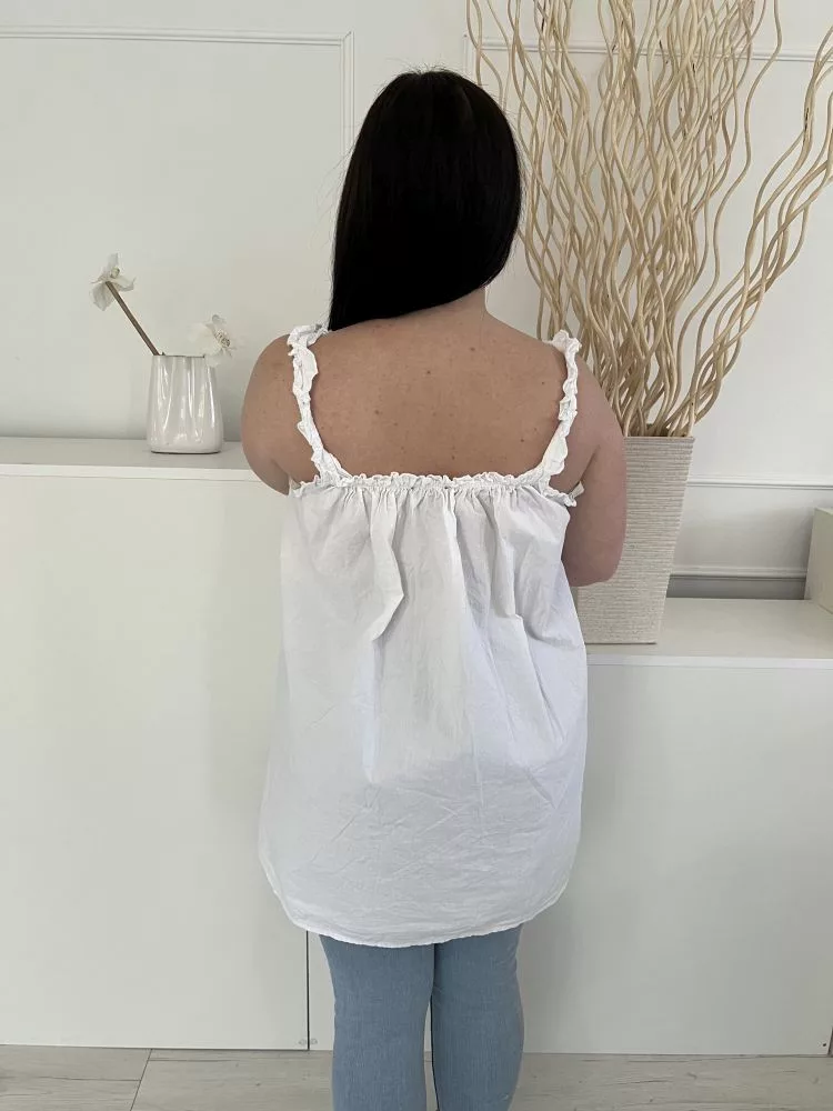 Boohoo (M) Fehér Fodros Szegélyű, Pántos Lenge Fazonú, 100% Pamut Felső