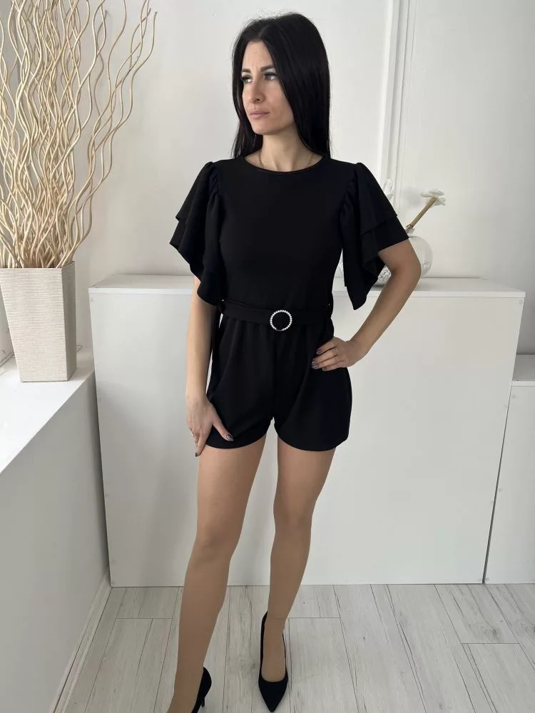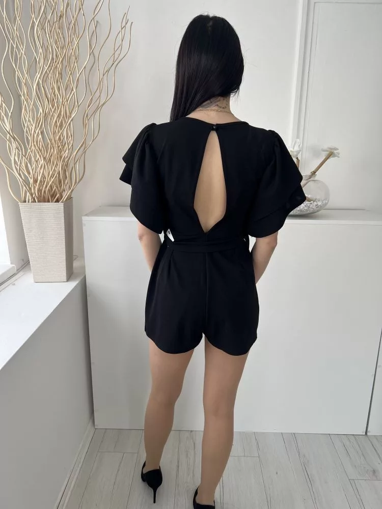 Boohoo (M) Fekete Ujján Rétegelt, Öves Derékban Szabott, Hátul Nyitott Overál