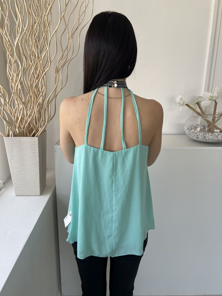 Cameo Rose (M) Menta Hátul Nyakban Gombos, Elől-Hátul Díszpántos Bélelt, Lenge Fazonú Felső