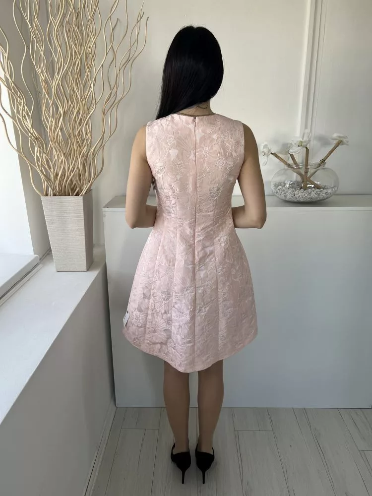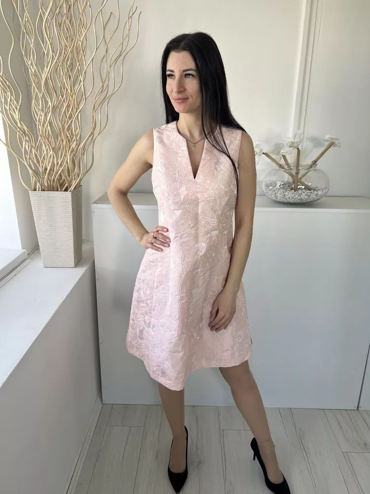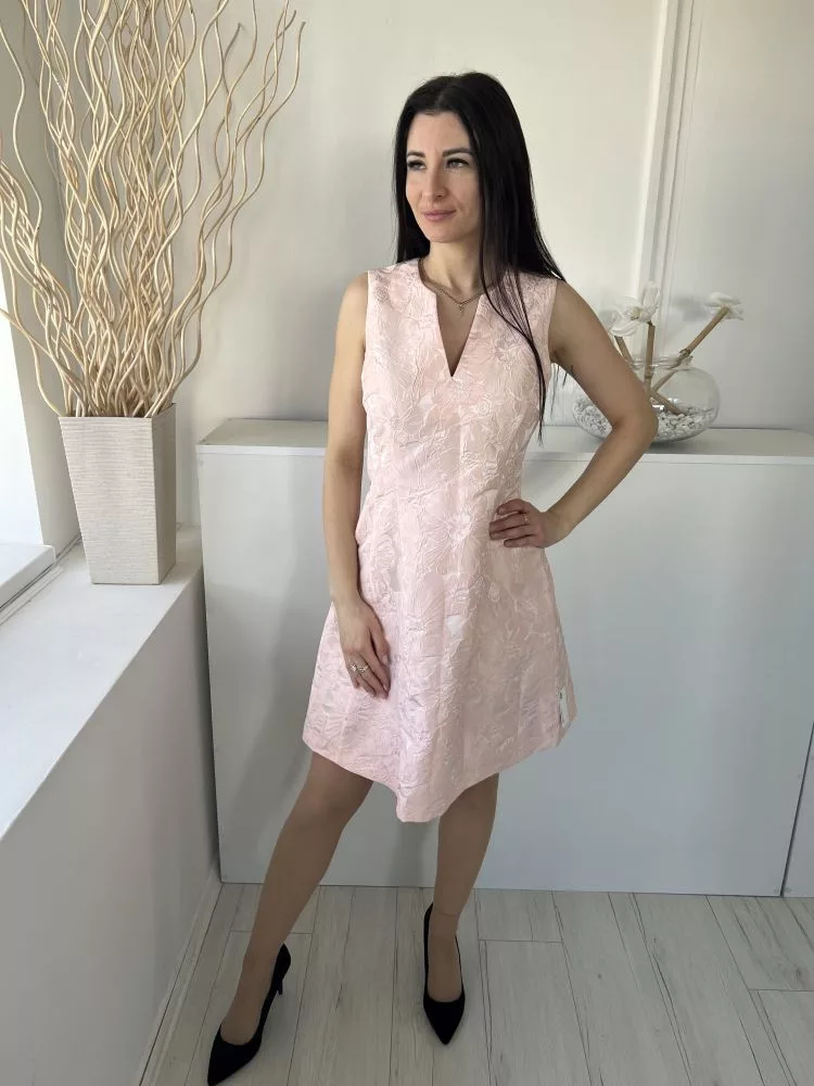 Coast (M) Világos Rózsaszín Anyagában Mintás, Hátul Cipzáros Bélelt, V Kivágású Ruha