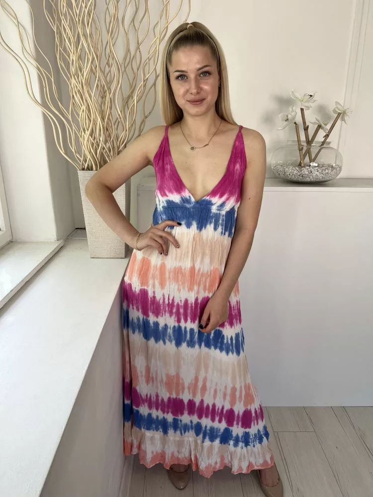 Corte Hindú (XS) Fehér Színes Mintás, Gumisderekú Pántos Ruha