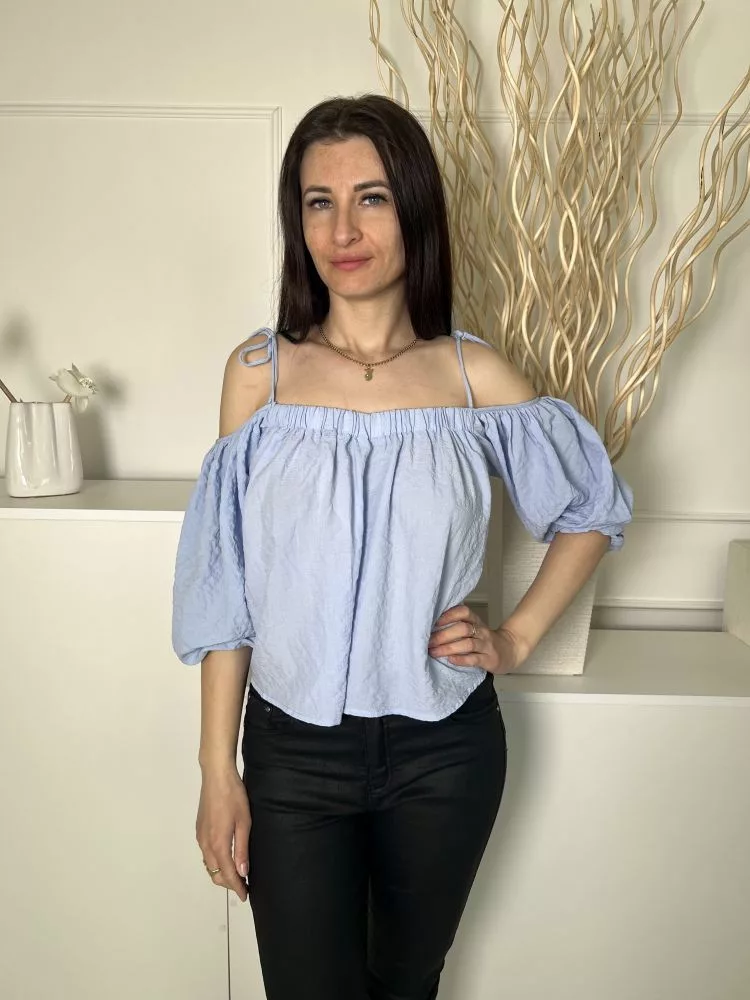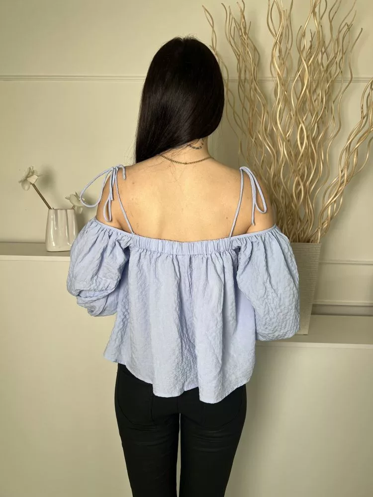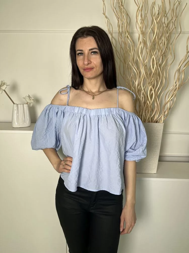Dorothy Perkins (S) Kék Anyagában Mintás, Megköthető Pántú Buggyos Ujjú Felső