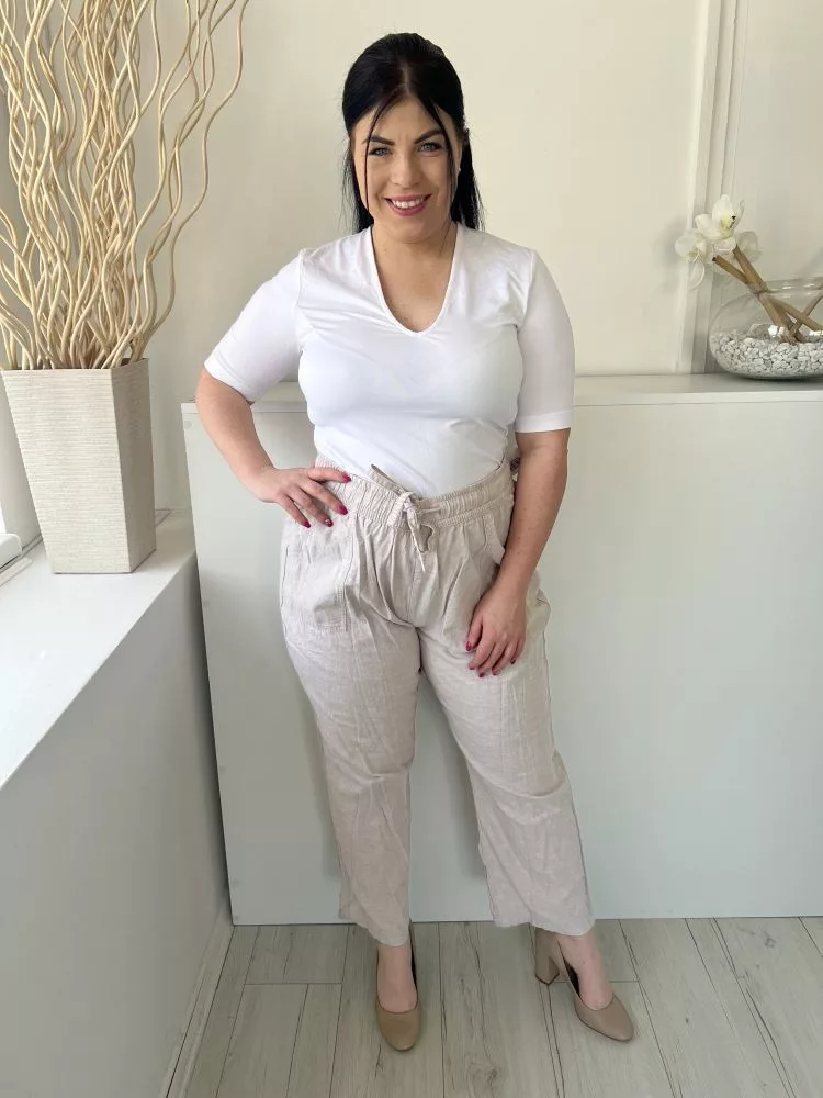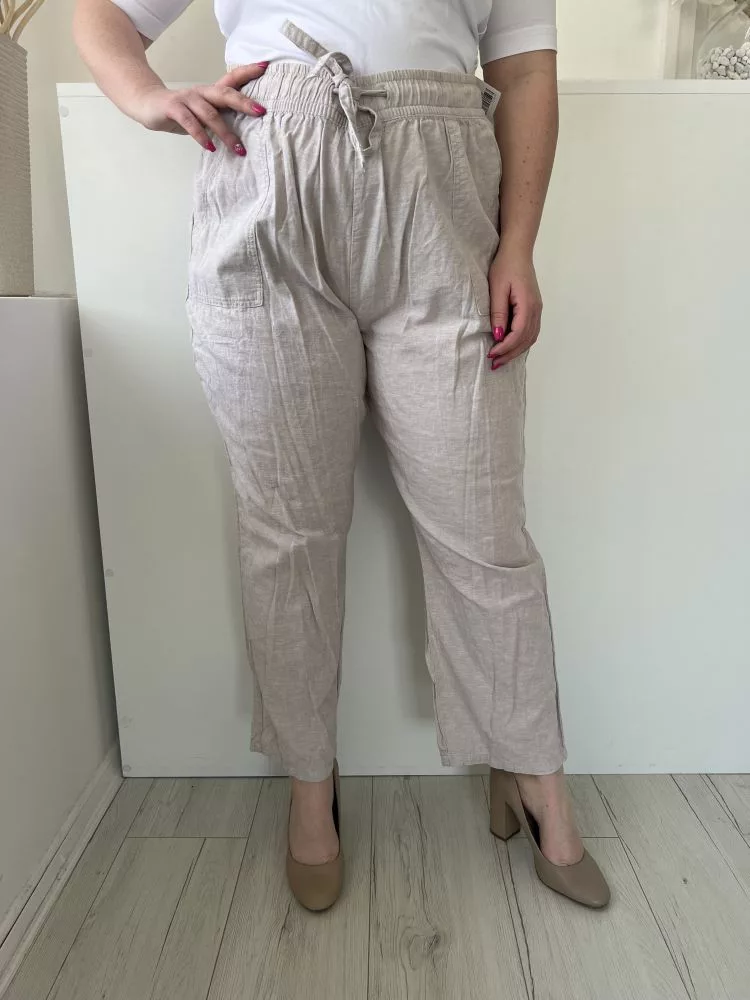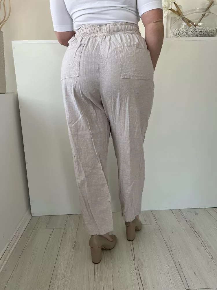 Dunnes (L) Drapp Derékban Összehúzható, Megkötős 55% Len és 45% Pamut Alapanyagú Nadrág