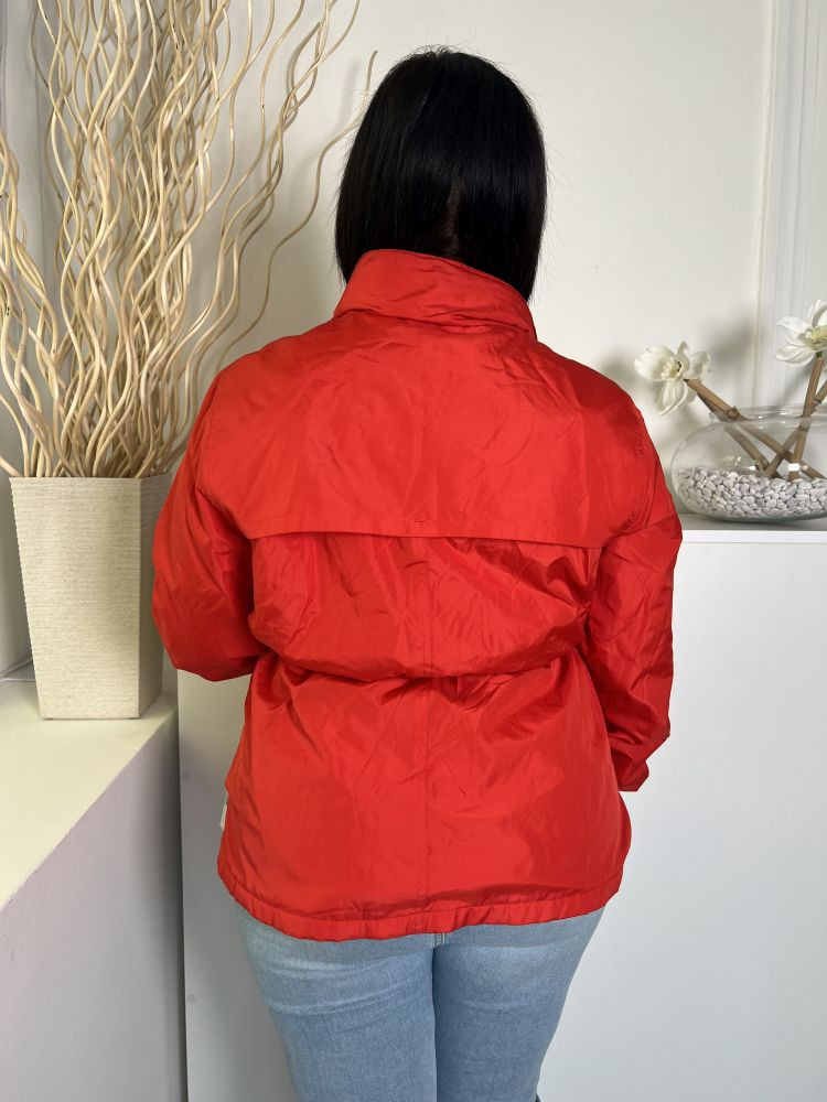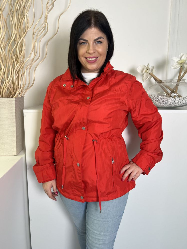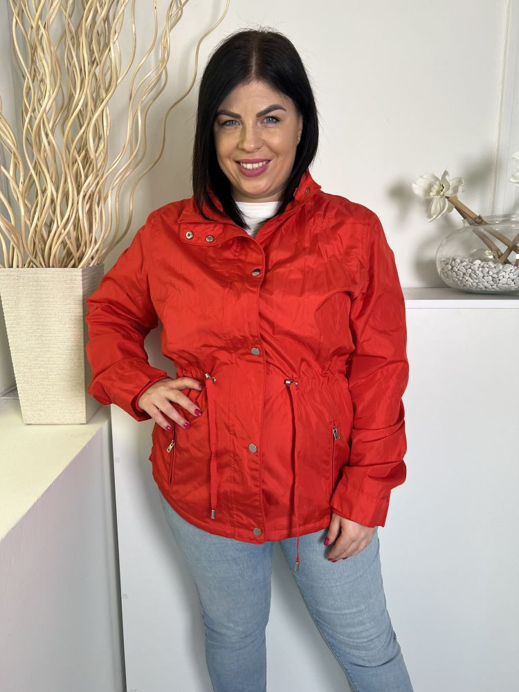 Dunnes (L) Piros Elől Cipzáros, Patentos, Derékban Összehúzható Zsebes Kabát