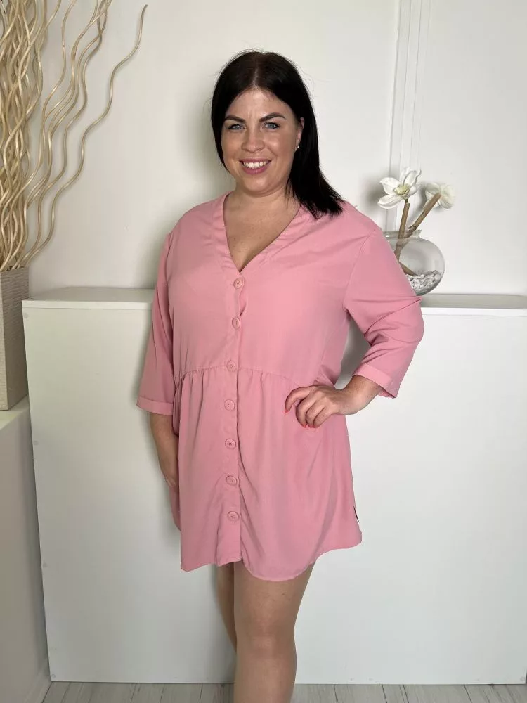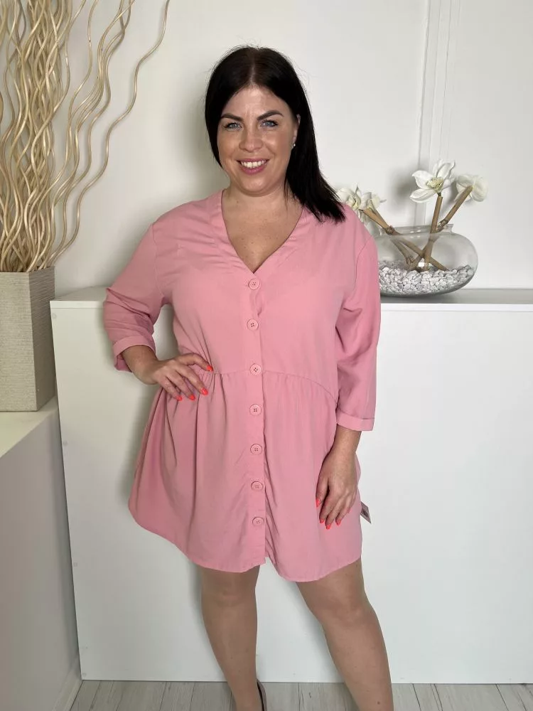 Dunnes (L) Rózsaszín Elől Végig Gombos Derékban Szabott, V Kivágású Ruha