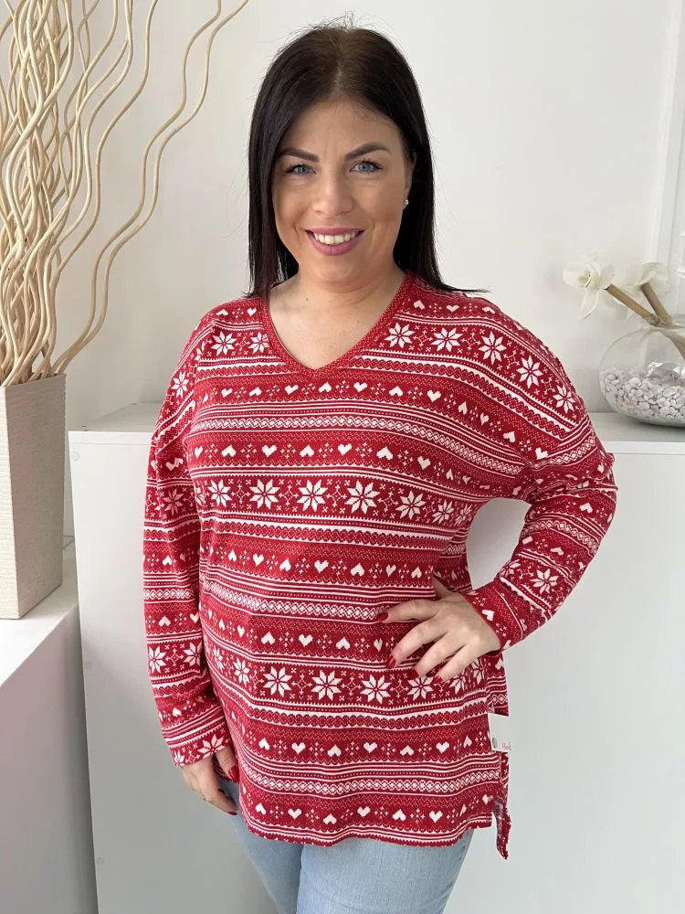 Dunnes (M) Piros Fehér Mintás, V Nyakú Oldalt Sliccelt, Pizsama Felső