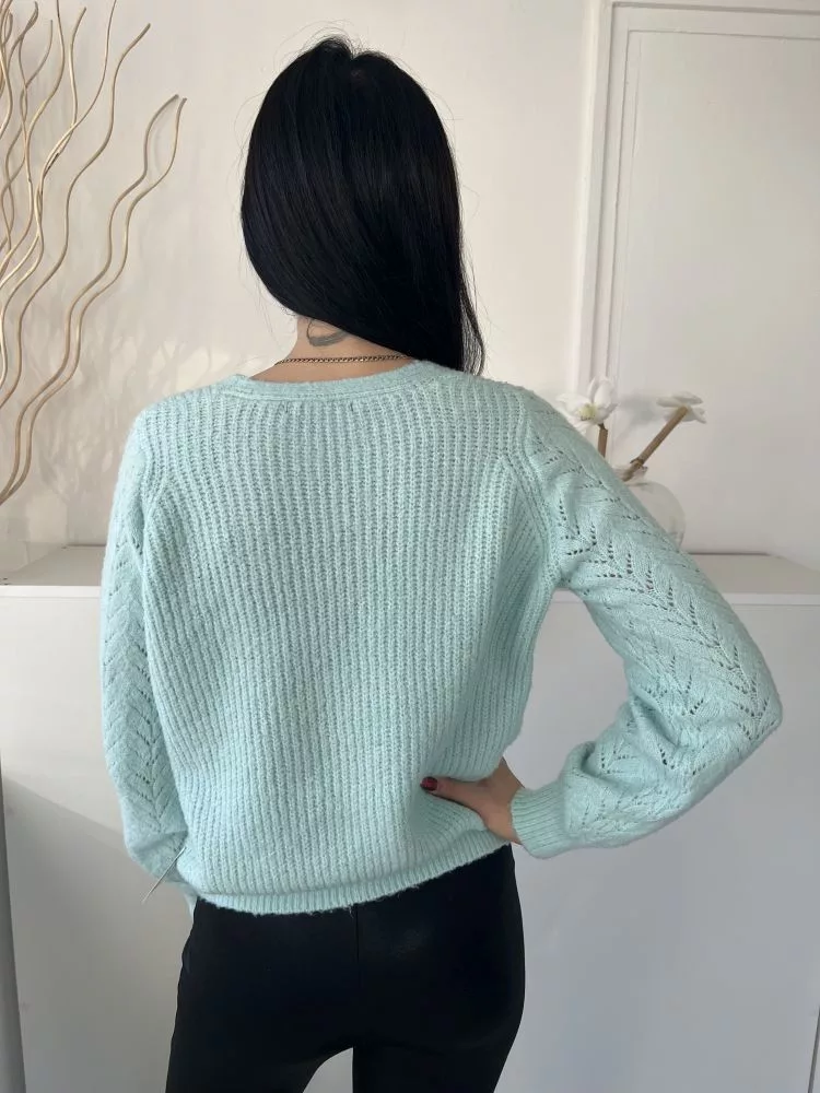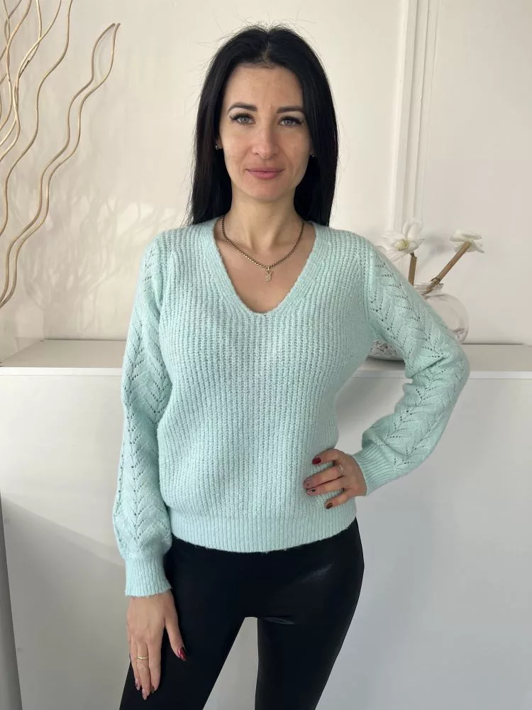 Dunnes (S) Mentazöld Anyagában Mintás, V Kivágású Vastag Kötött Anyagú Pulóver