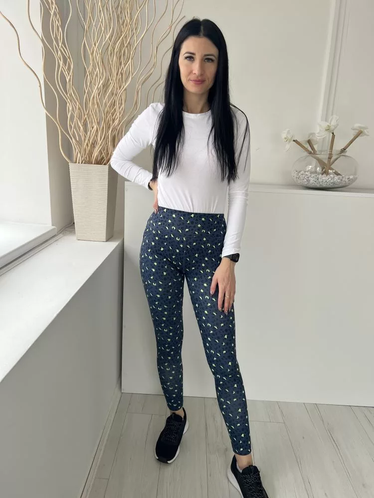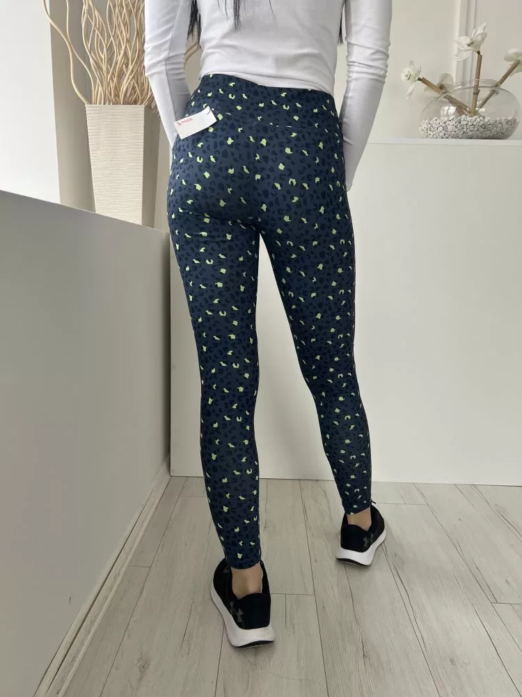 Dunnes (S) Sötétkék Neon Zöld Foltmintás Gumisderekú, Rugalmas Anyagú Nadrág