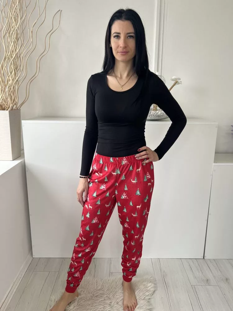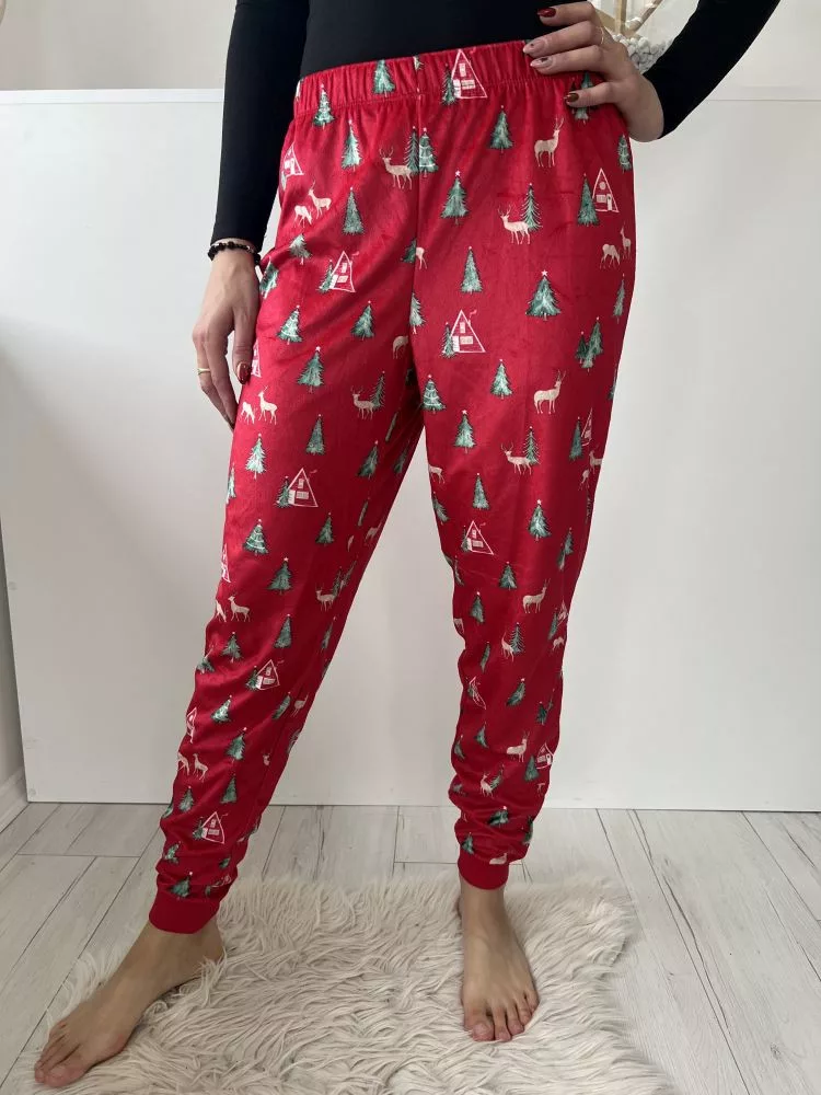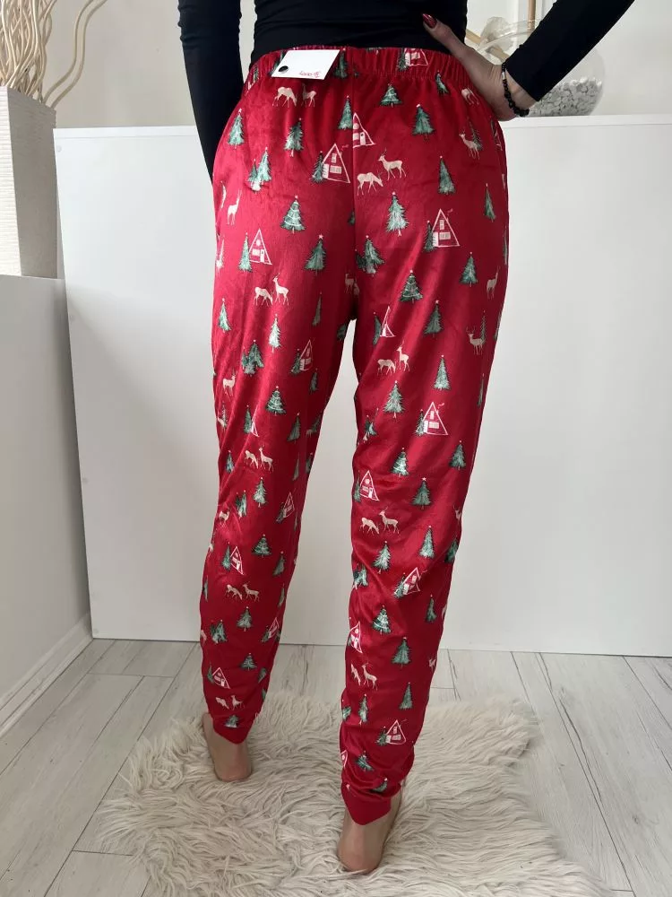 Dunnes (XS) Piros Tükörbársony Mintás, Gumisderekú, Pizsama Nadrág