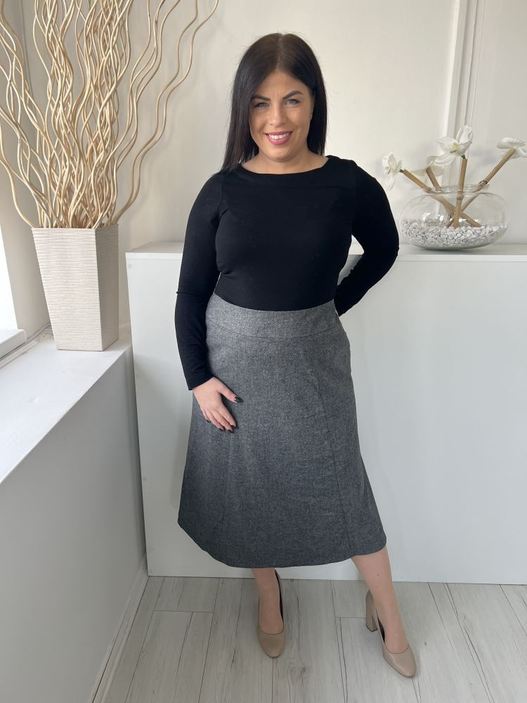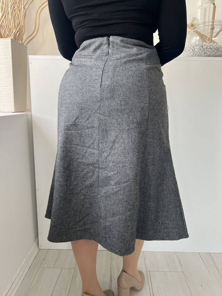 Eastex (L) Szürke Hátul Cipzáros Zsebes, Szatén Bélésű, Szövet Szoknya