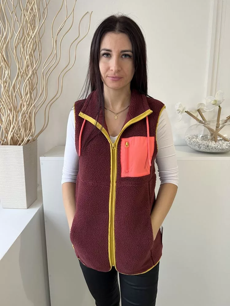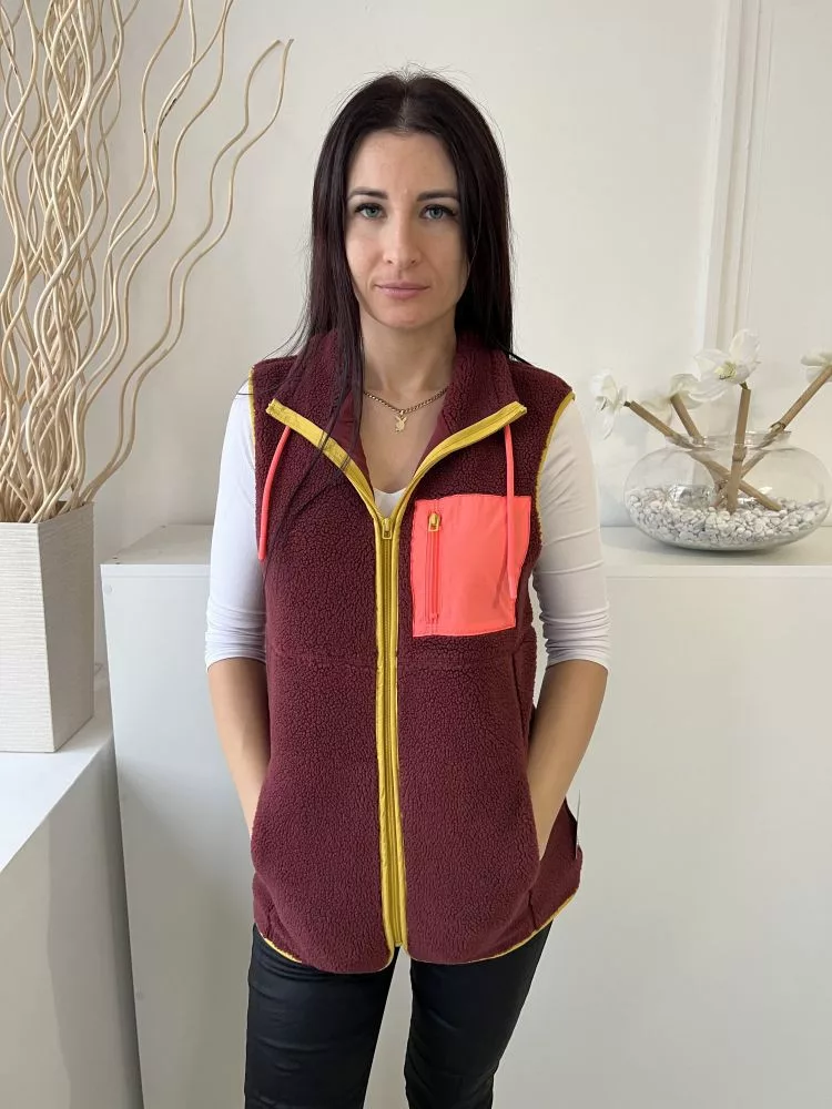Elements (XS) Vörösesbarna Elől Cipzáros, Zsebes Teddy Mellény