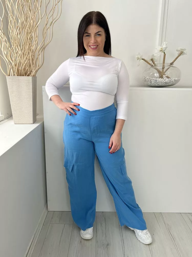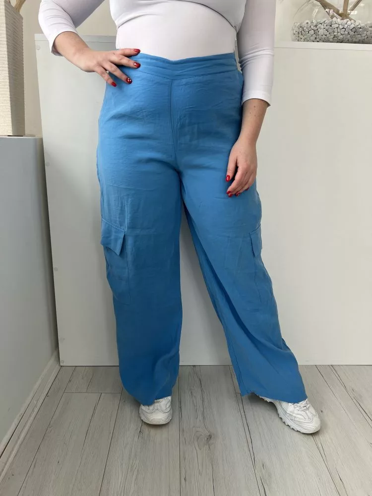 F&F (L) Égkék Hátul Gumisderekú, Oldalt Zsebes Vékony Anyagú Nadrág