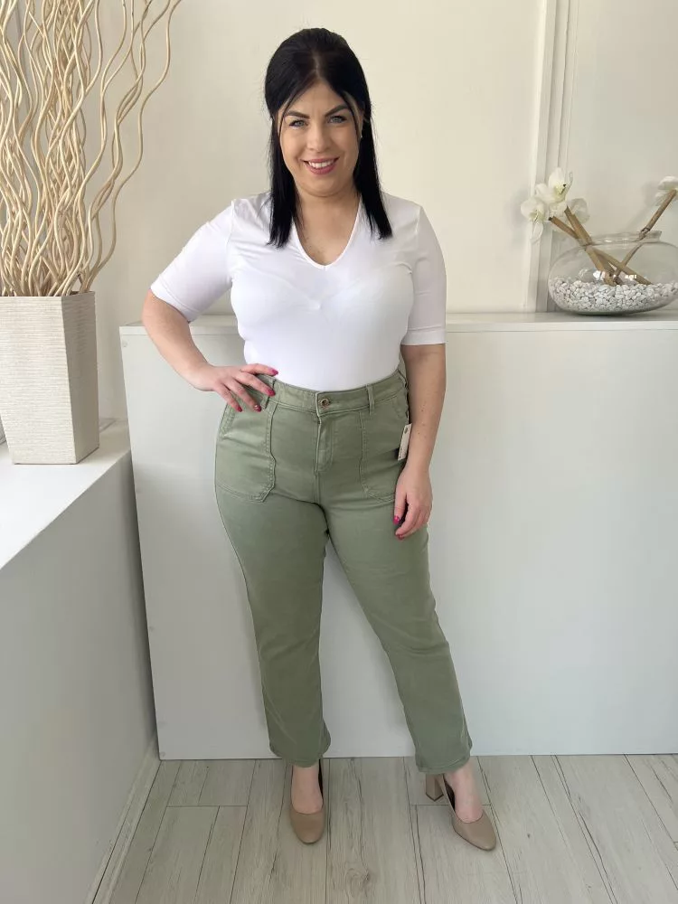 F&F (L) Khaki Elől Gombos, Zsebes Övtartós Nadrág