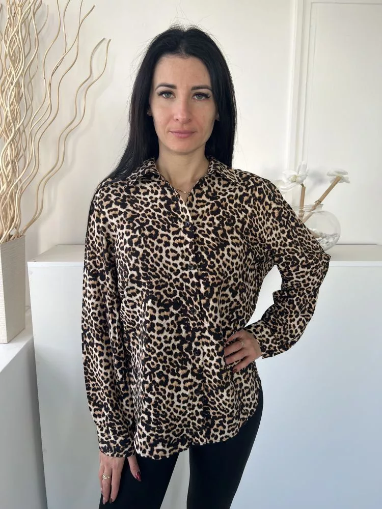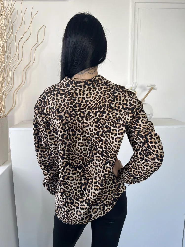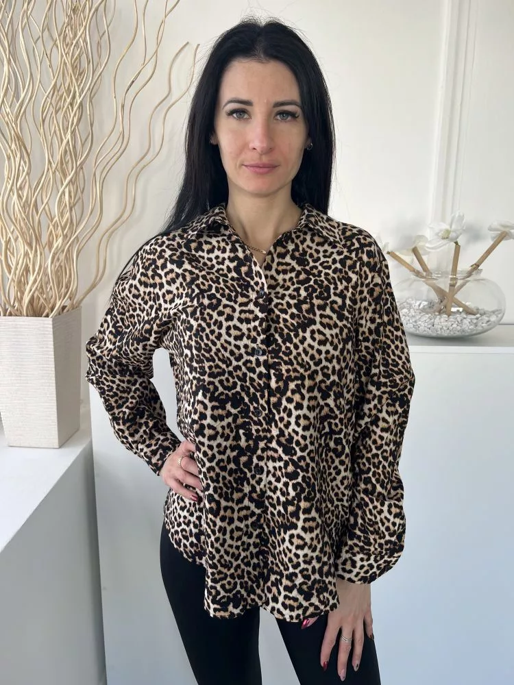 F&F (M) Barna-Sárga Fekete Leopárdmintás, Elől Végig Gombos Galléros Felső