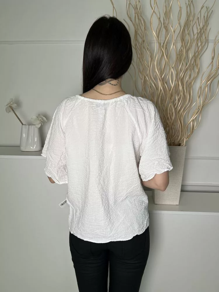 F&F (M) Fehér Anyagában Mintás, Nyakban Megköthető BőUjjú Felső