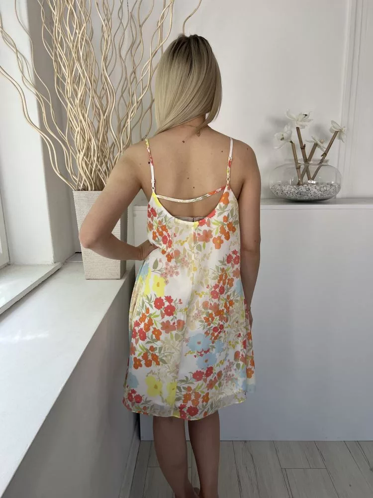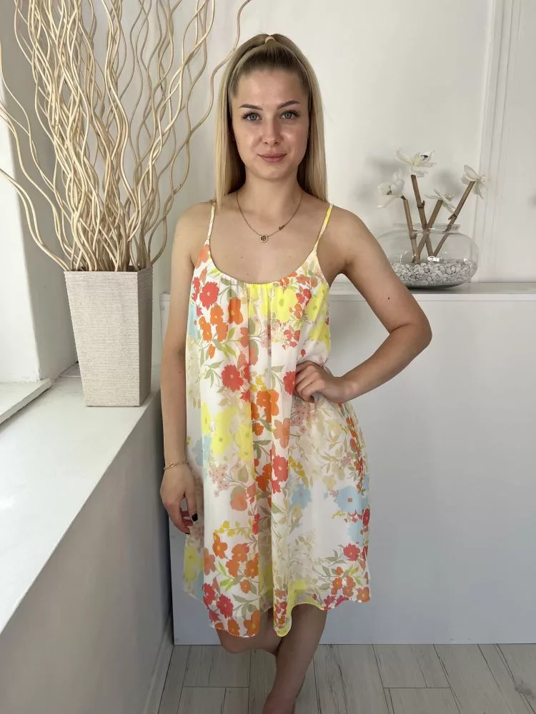 F&F (M) Fehér Színes Virágos, Bélelt Pántos Ruha