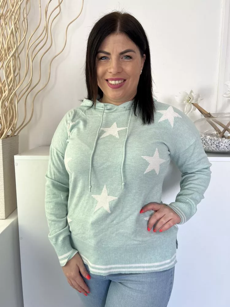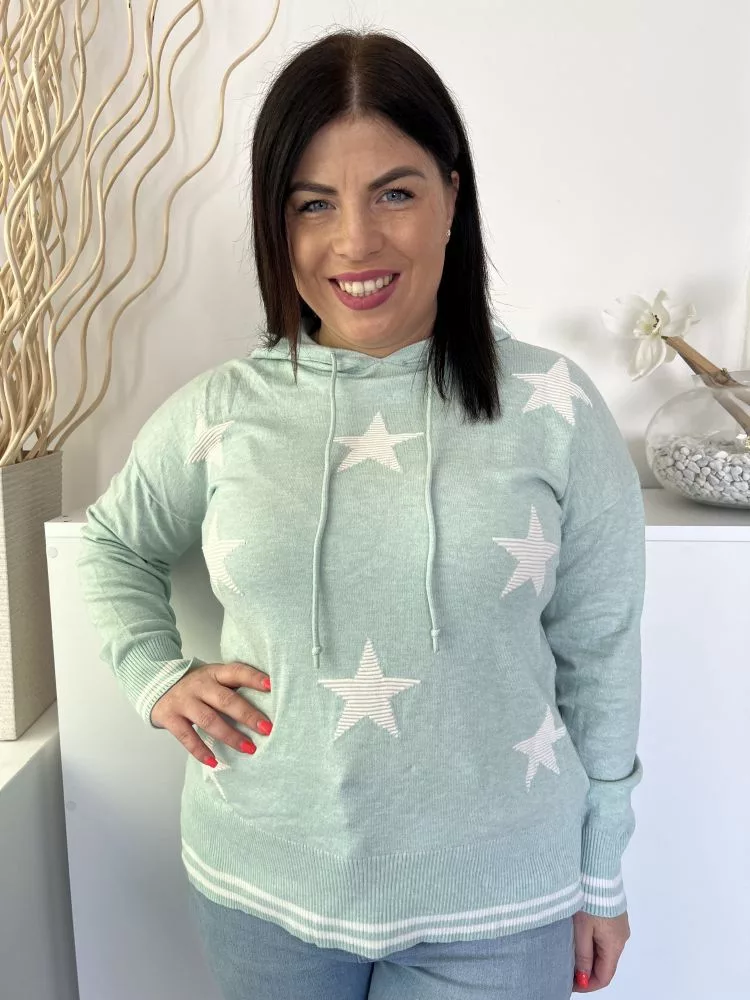 F&F (M) Menta Gépikötött Csillagmintás, Kapucnis Felső