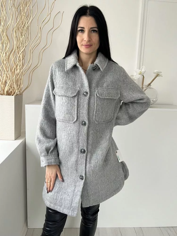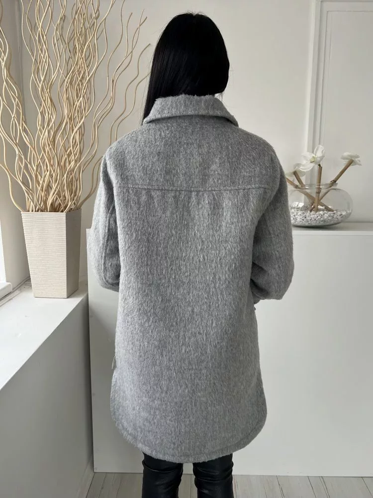 F&F (M) Szürke Elől Gombos, Zsebes Mellnél Zsebes, Anyagában Szőrös Kabát