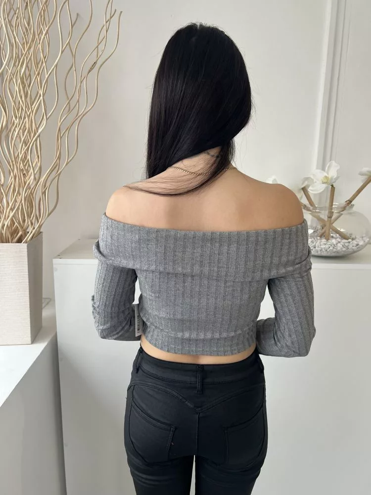 F&F (S) Szürke Anyagában Bordázott, Ejtett Vállú Rövid Fazonú Felső