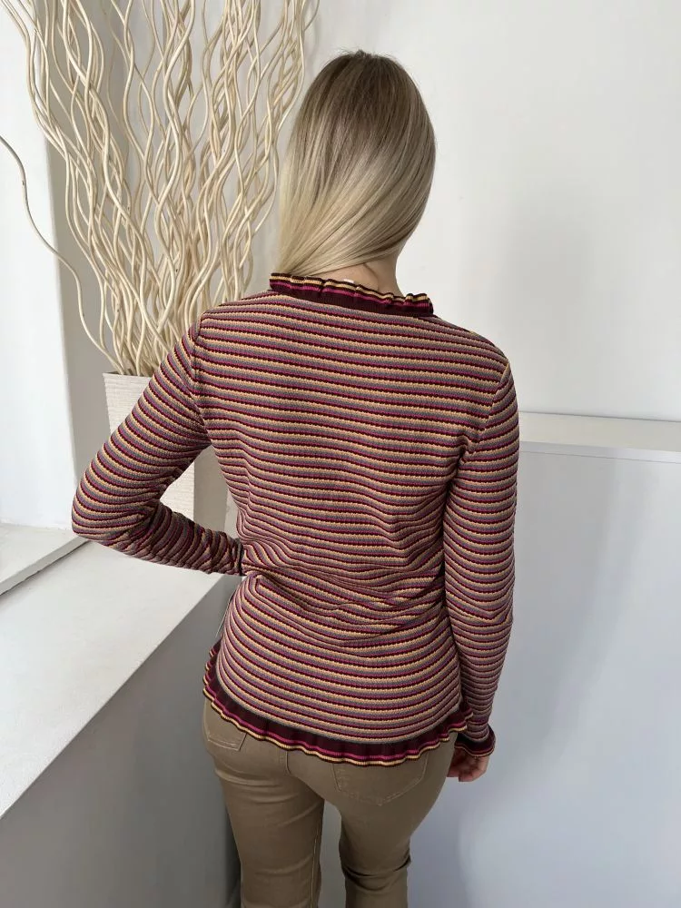 Falmer (S) Barna-Sárga-Pink Csíkos, Fodros Nyakú és Aljú Rugalmas Anyagú Felső