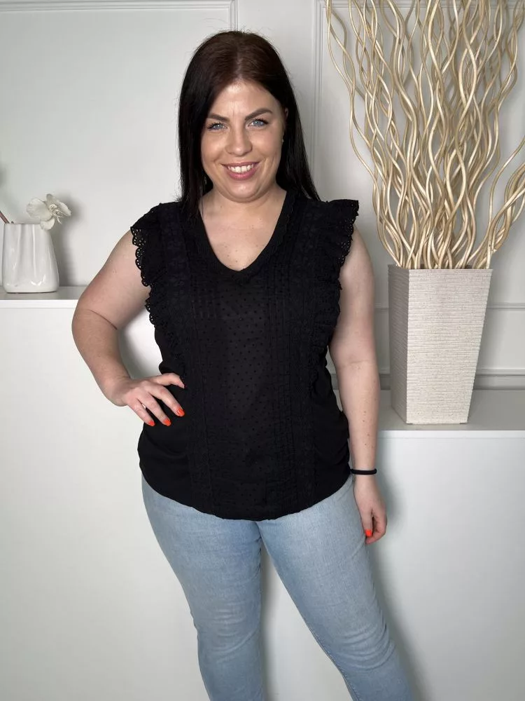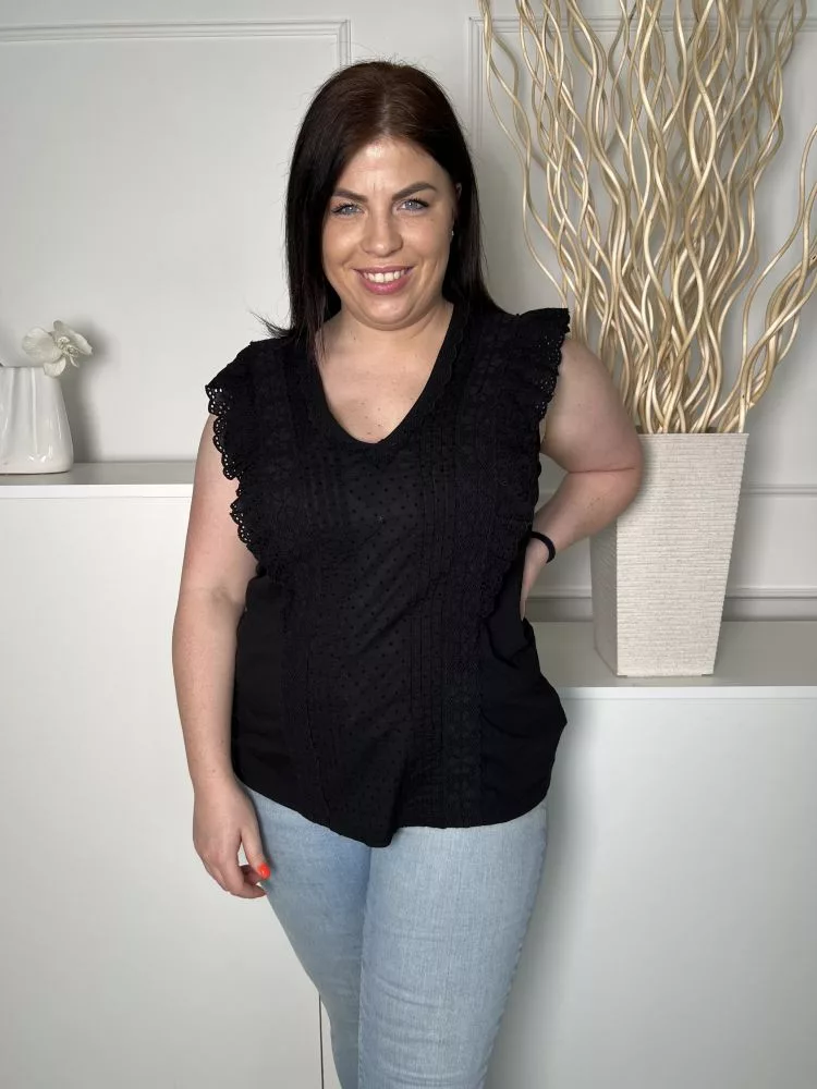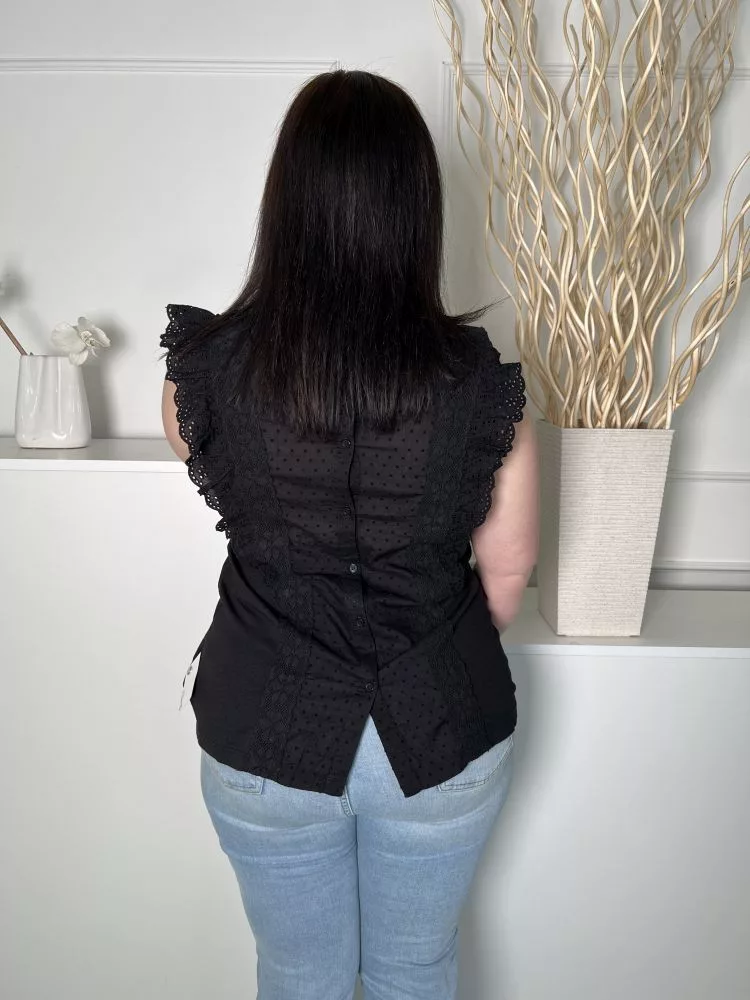 Fat Face (M) Fekete Anyagában Mintás, Horgolt Szegélyes Hátul Végig Gombos Felső