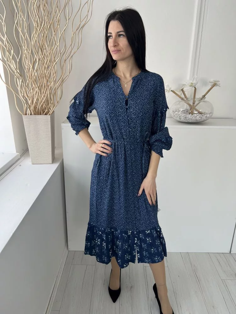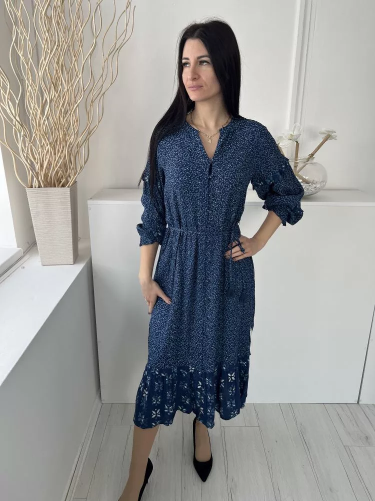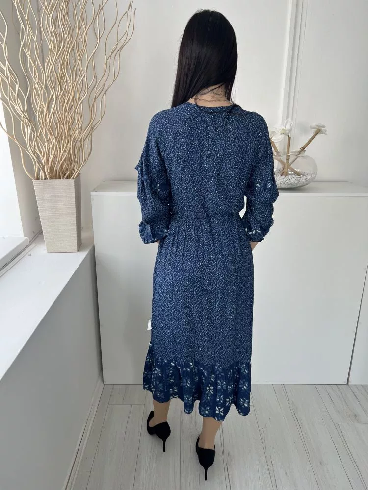 Fat Face (M) Sötétkék Apró Mintás, Elől Végig Gombos Derékban Megkötős, Buggyos Ujjú, Zsebes Ruha