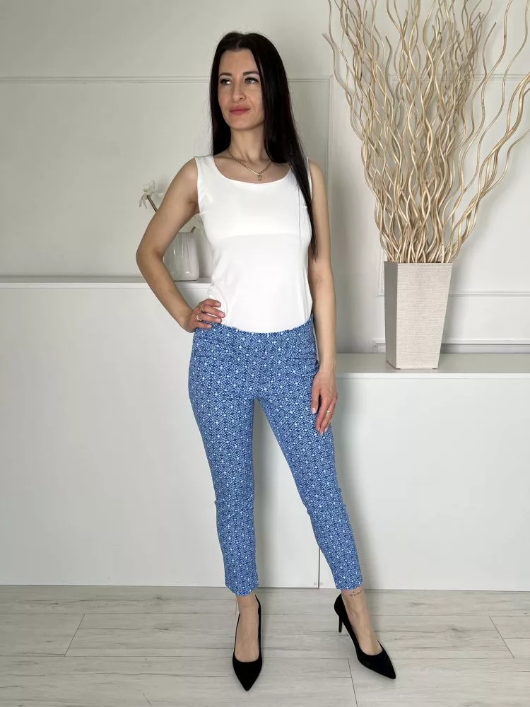 GAP (S) Kék Apró Mintás, Elől Kapcsos, Gombos Elől Zsebes, Szűkített Szárú Nadrág