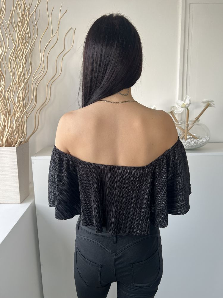 GAS (M) Fekete Felül Csillogós Dupla Anyagú Ejtett Vállú Body