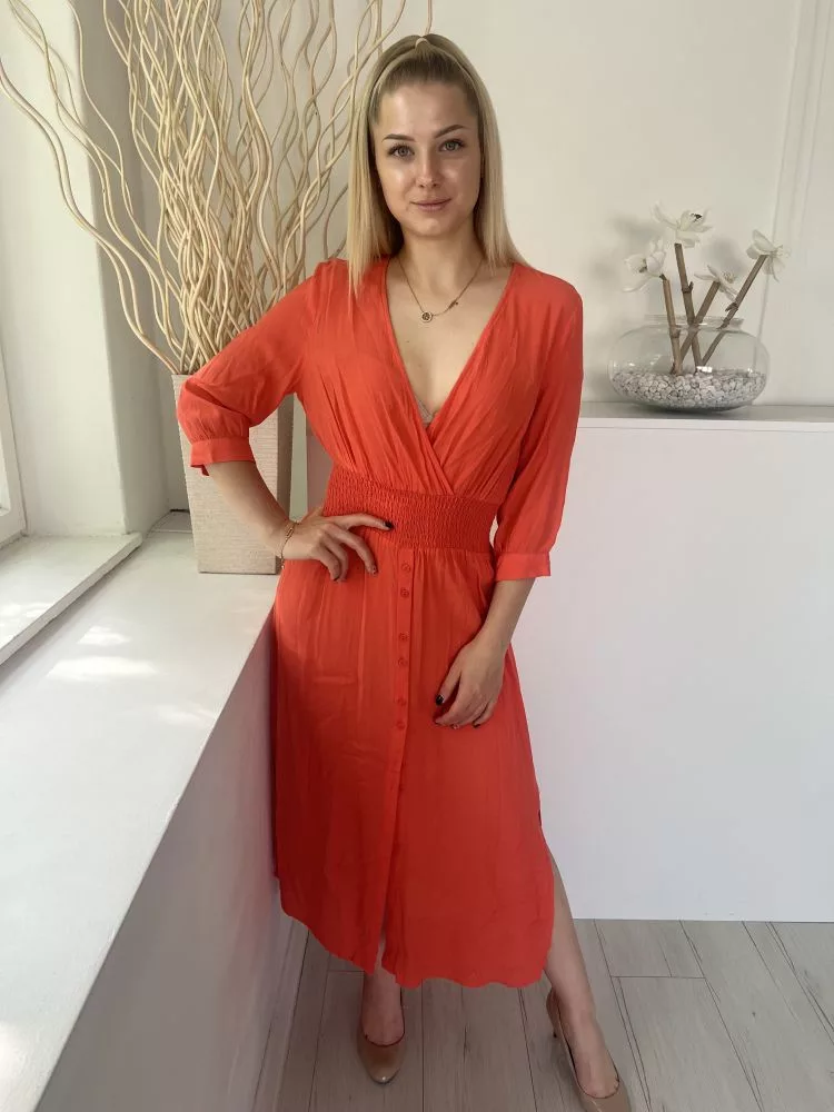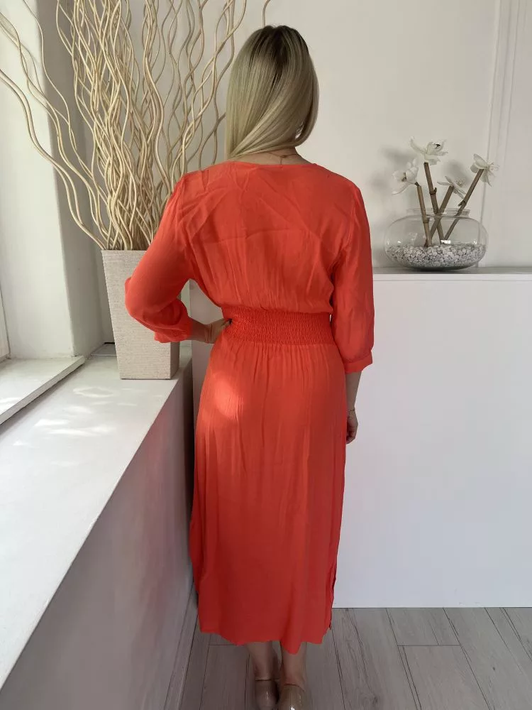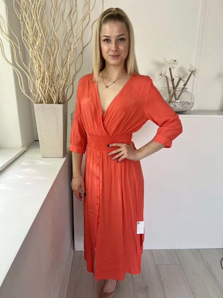Gallery (M) Lazac Derékban Darázsolt, Szoknyarészén Gombolható Oldalt Sliccelt, Mellnél Átlapolt Ruha