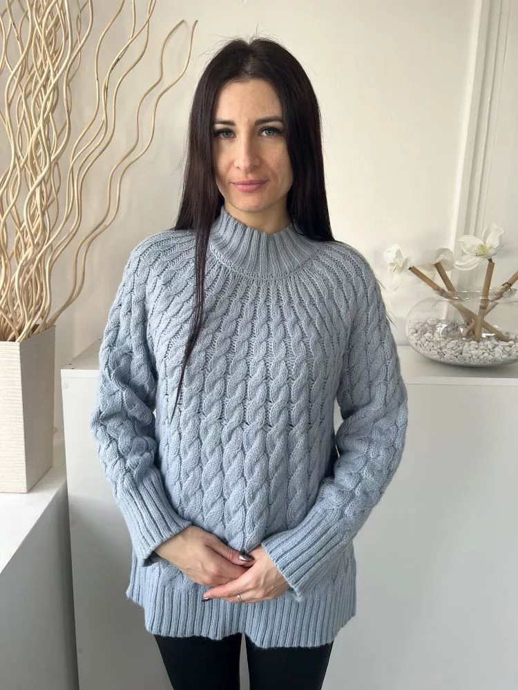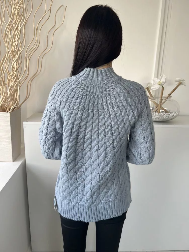 Gallery (S) Vízkék Anyagában Mintás, Magasított Nyakú Kötött Felső