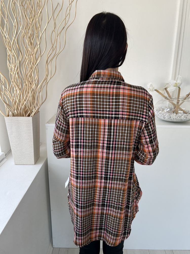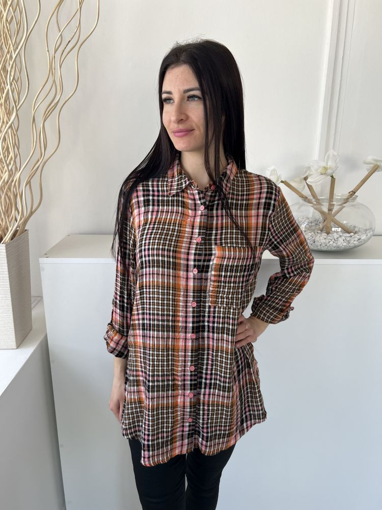 George (M) Barna-Mályva Fekete-Fehér Kockás, Elől Végig Gombos Mellnél Zsebes, Felgombolható Ujjvégű Felső