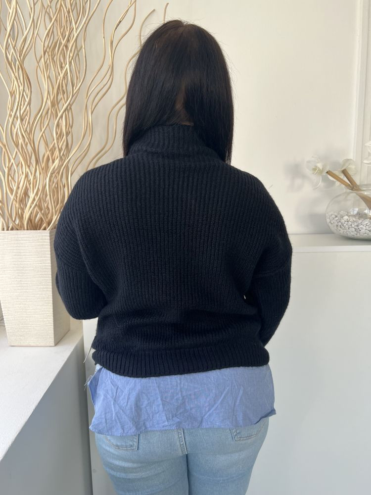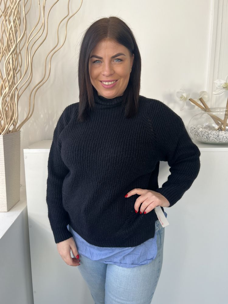 George (M) Mélykék Alul Ingbetétes, Magasított Nyakú Vastag Kötött Pulóver