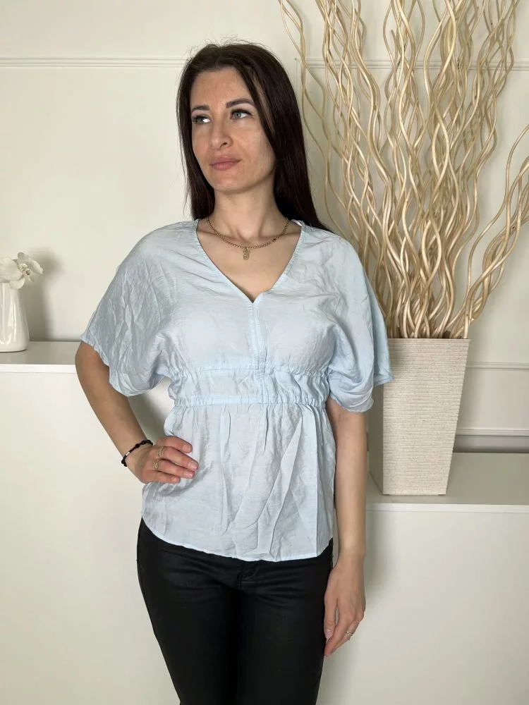 George (M) Világoskék Derékban Gumírozott, V Kivágású Hátul Megkötős, Kerekített Aljú Felső