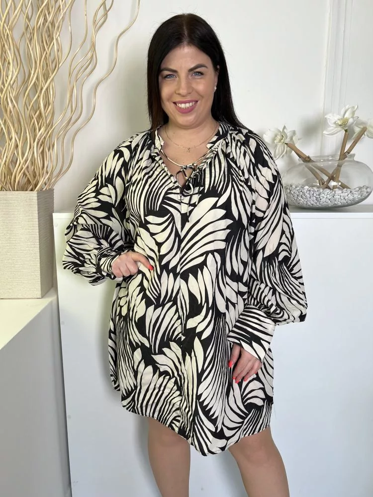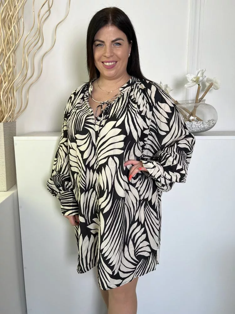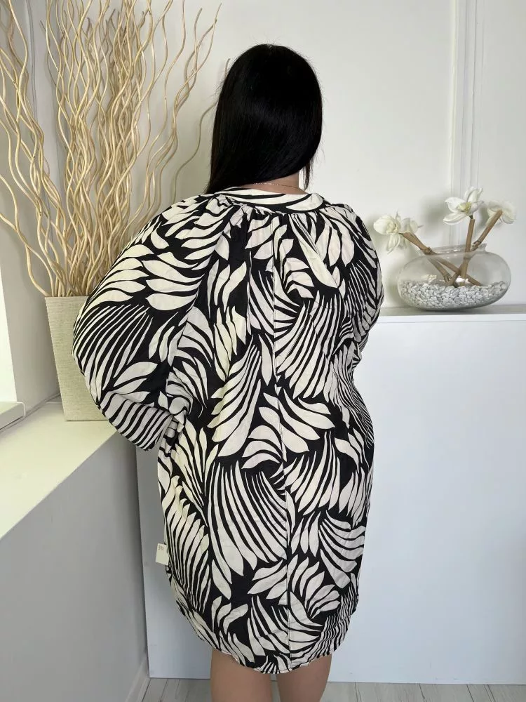 H&M (L) Fekete Fehér Mintás Elöl Nyakban Megkötős Ruha