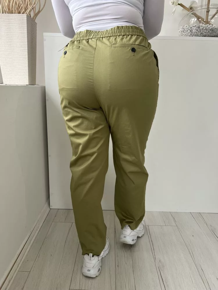 H&M (L) Világos Khaki Elől Gombos, Derékban Összehúzható Megkötős, Zsebes Nadrág
