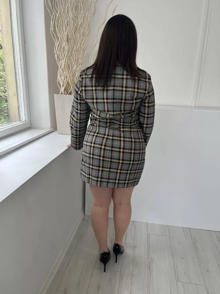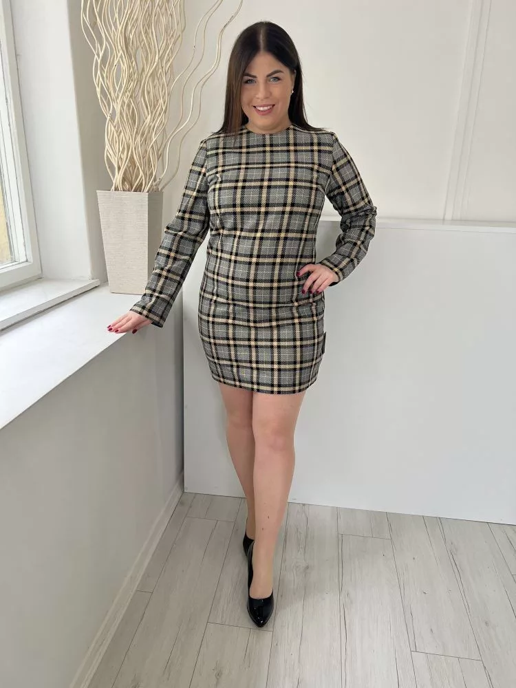 H&M (M) Szürke Barna-Fekete Kockás, Hátul Cipzáros Bélelt, Kerek Nyakú Ruha