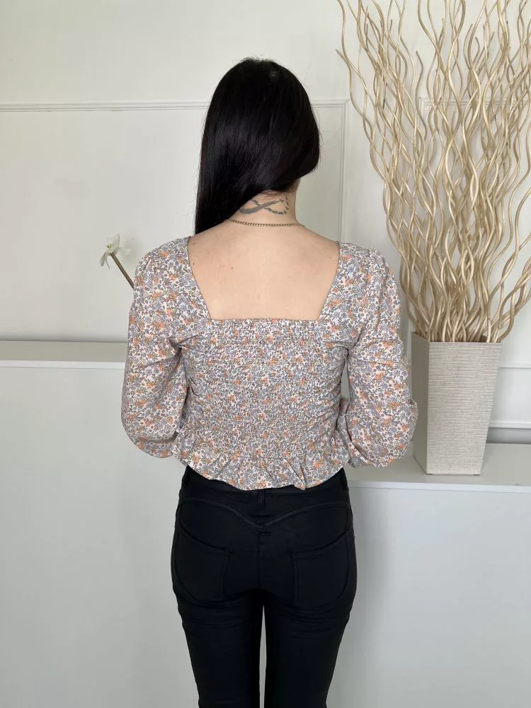 H&M (S) Drapp Színes Apró Virágos, Hátul Darázsolt Elől Húzott, Díszmegkötős Felső