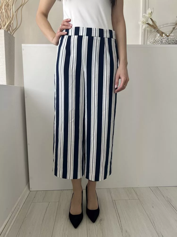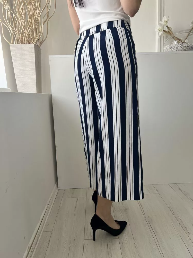 H&M (S) Fehér Sötétkék Csíkos Oldalt Cipzáros Bőszárú Nadrág