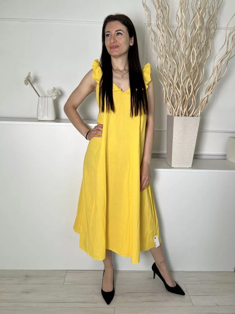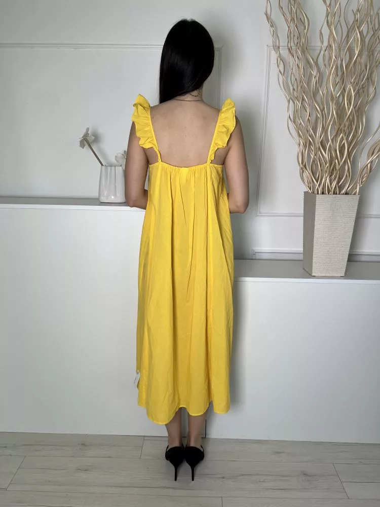 H&M (S) Kanárisárga Fodros Pántú 100% Pamut, Lenge Fazonú Ruha