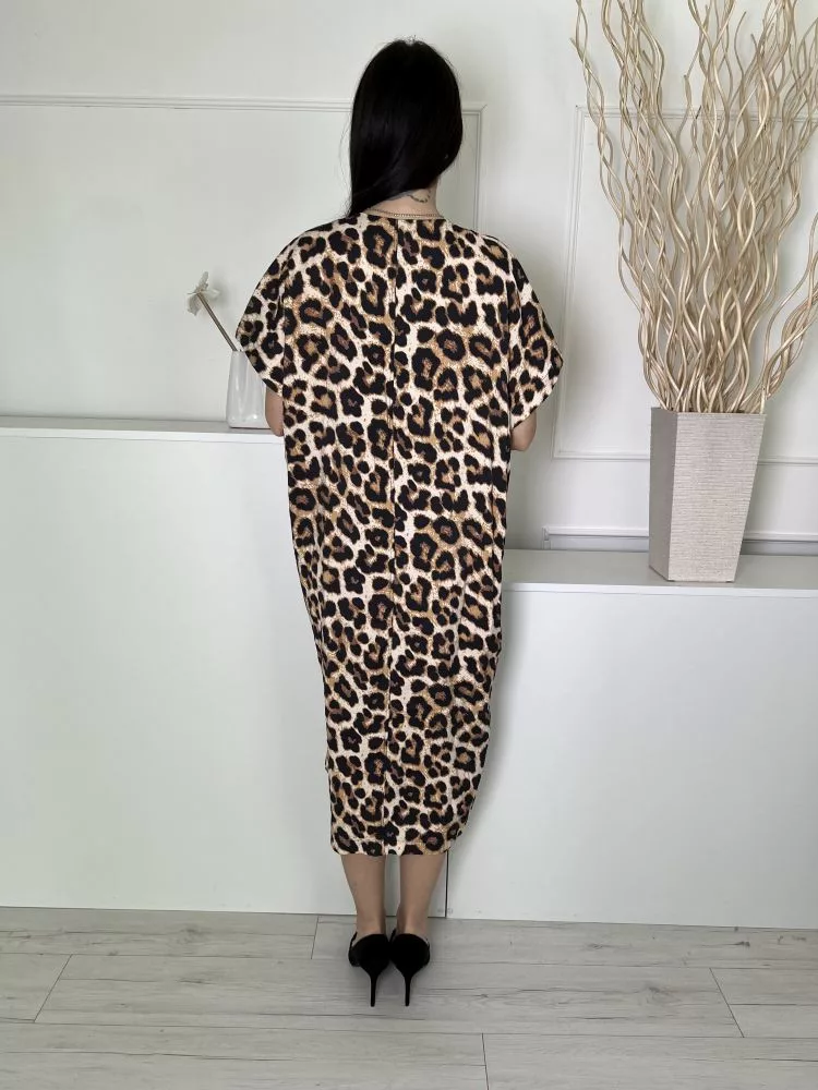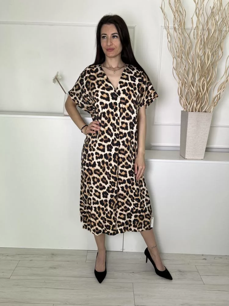 H&M (S) Sárgásbarna Fekete Foltmintás, V Kivágású Bőfazonú Ruha