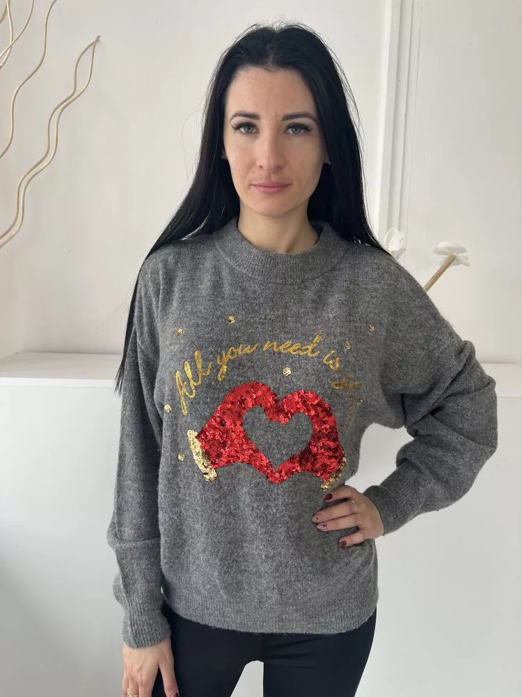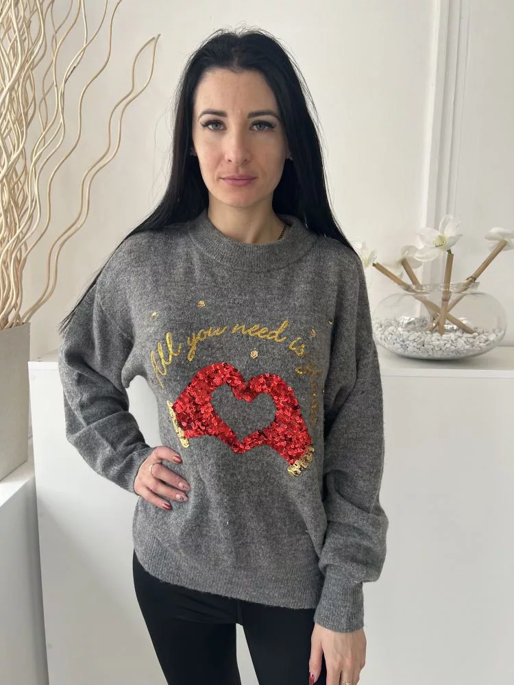 H&M (S) Szürke Kötött Flitteres Pulóver